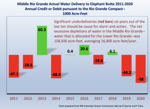 Read MoreAs discussed in the Water Advocates’ blog posting for the Minnow Action Team (MAT), the interim March 2021 Projected Annual Operating Plan (AOP) for the Middle Rio Grande (MRG) was presented during the MAT Meeting on 31 March 2021. The following briefly summarizes that presentation. The March URGWOM projections are based on observed snowpack water…